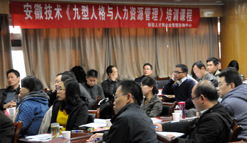 2012年11月24日,安徽技术参与了由新安人才网企业管理咨询中心举办的《九型人格与人力资源管理》培训。九型人格是一门古老的性格学说,它来自于实践的智慧。当美国斯坦福大学第一次将九型人格引进MBA的人力资源课程中后,风靡全球。因为它用简单通俗的方式告诉我们,知己知彼,知人善用,当自助成长与支持他人成长同时进行时,方能实现团队人力资源管理效率的最大化。老师在培训过程中指出,只有优化了人才配置,降低了用人成本,方能发挥团队的最大潜能。