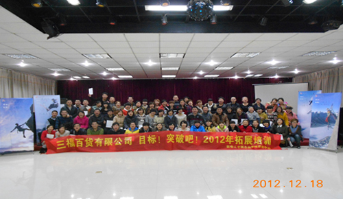 当今世界,商场如战场!能够充分考虑各种因素,制定完整战略,执行有效战术的团队必将是一个常胜的团队。2012年12月18日,三福百货有限公司以“目标,突破吧”为主题,展开了一场别开生面的拓展活动。本次训练通过实践体现了团队的能力,培训过程中大家纷纷表示,一个组织有序的团队定能战胜一个没有组织的团队。