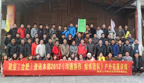 2012年12月2日,由新安人才网企业管理咨询中心举办的《沟通协作 熔炼团队》户外拓展训练在小木屋度假村拉开了帷幕,来自联宝资讯本部的学员们参加了此次培训。本次拓展训练以熔炼团队,增强全体员工的凝聚力,加强团队建设,提高责任意识为主,进而建立一支相互配合、支持和理解的高绩效团队。学员们在培训过程中抛开了一切,全身心地投入到了训练之中。大家在“信任背摔”中深切懂得,在平时的工作中,只有你信任别人,拿出你的真诚对待别人,别人才会信任你,当你遇到困难时,大家会毫无保留地伸出爱心之手来帮助你,得到人的帮助是一种幸福,能帮助别人更幸福。培训结束后,大家合影留念。