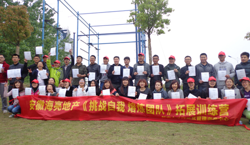 同样的一块玉,可以黯淡无光,也可以光润无瑕;同样的一支队伍,可以庸碌无为,也可以成就大业。为了提高团队的协作能力,2013年4月20日,来自安徽海亮房地产有限公司的学员们参加了由新安人才网企业管理咨询中心举办的《挑战自我 熔炼团队》户外拓展训练活动。这是安徽海亮房地产有限公司第一批学员拓展训练,在德兰堡拓展基地进行。学员们在拓展老师的带领下,进行着各种训练项目,通过团队的生成、展示和整合,大家的理解和沟通能力得到了很好的提升。学员们在实践锻炼中学习,在体验学习中改变,大家获益匪浅。在体验着集体智慧带来的成功喜悦后,每个人深刻感受到“责任、团队、信任”的精髓。最后,大家在一片欢声笑语中合影留念,结束了本次训练。