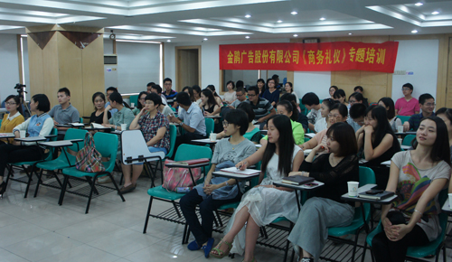 人无礼而不立,事无礼而不成,国无礼而不宁。人类社会发展的历史证明,“礼”是不能被忽视的。知晓礼仪,能够营造良好氛围,促进合作。正所谓“礼兴人和”,人与人之间方能和谐共处,实现多赢。对于职场人士来说,礼仪和沟通显得尤为重要。2013年9月13日,由新安人才网培训中心举办的《商务礼仪》培训课程在金娟广告有限公司的培训教室成功实施。本次课程,由新安人才网签约讲师程菲老师为学员们授课。培训过程中,程老师从人们的仪表、言行到形象打造,为学员们详细介绍了礼仪的重要性,同时带领学员学习如何在服务礼仪上不断追求高目标,提升服务品位,创造服务特色。学员们积极参与、热烈讨论、踊跃发言。课程结束后,学员们都坦言获益匪浅。