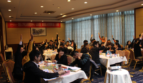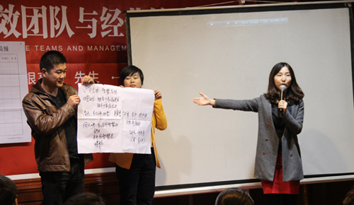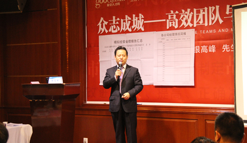 2013年10月25-26日,由新安人才网企业管理咨询中心举办的精品公开课《众志成城:高效团队与经营管理沙盘》在银瑞林大酒店圆满落幕,来自20家企业的40多名学员参加了此次课程。 本次课程,由新安人才网签约讲师银高峰老师为学员们授课。作为第二代沙盘模拟演练课程的开创者与实践者,银高峰先生在市场运作和执行方面有着深厚的功力和实际操作经验。本次公开课堂上,银老师将学员分成五组,通过角色分工、组建团队,模拟市场上企业间的竞争。银老师带领各组从调查市场、发现需求、分析竞争者、判断竞争优势、预测环境变化、对市场运筹于先、预测战略结果、合理配置营销资源等方面对营销战略问题做了深层次理解。整个课程强调要增强全局观念,利用公司特色打造竞争优势,使整个公司传递准确、连贯、一致的市场信息。课程结束时,每组选派代表上台发言总结,大家都谈到了公司经营过程中出现的一些失误,以及一些好的经验,同时引用了现实工作中遇到的一些问题进行分析。 两天的课程,内容充实新颖、培训气氛活跃、言简意赅、案例经典、分析深刻。通过这次课程的展开,使得学员上下理解“顾客导向”和“市场导向”的真正含义,开拓了营销思路,提高了实际操作技能。最后,工作人员还对学员们进行了课程满意度调查,结果显示,大家对银高峰老师的课程非常满意。相信通过此次课程的学习,学员们能够更好的经营企业,更好的管理团队。正如银老师所说,成功或失败,都不是最重要的,重要的是你从中学到什么。