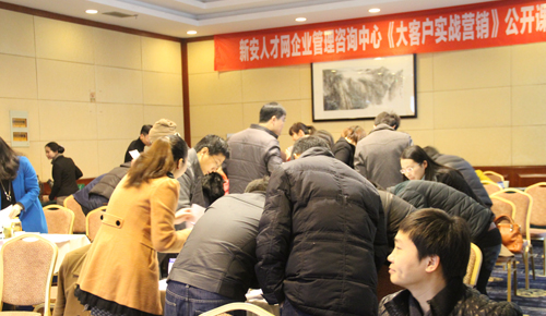 做大客户销售,很多销售同仁都抱有以下问题:究竟怎样的客户才算是大客户?怎样才能“钓”到大客户?做大客户销售都有哪些策略可循?怎么防止大客户流失? 2014年2月21-22日,新安人才网企业管理咨询中心马到功成系列公开课第一期《大客户实战营销》在银瑞林大酒店成功举办,来自15家企业的40多名学员参加了此次课程。