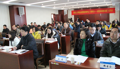 2014年12月21日,新安人才网企业管理咨询中心2014年“马到功成”系列公开课的收官之作《领导力——决定未来的力量》在合肥市蜀山区百协大溪地第三会议室顺利举办!来自全省各行各业的53名企业家、企业高级管理者参加了本次课程。 为了帮助企业管理者提升管理团队的领导力,开启管理团队的新思路,大道无形地提高领导者的自我修炼,新安人才网企业管理咨询中心特邀请国内著名学者、实战派战略思想家孙学敏老师来合肥讲课。 在授课过程中,孙学敏老师从企业管理者普遍存在的思维困惑入手,层层剖析领导者在日常管理中所遇到的问题,针对性的提出了解决建议。 孙老师用一个个生动真实的案例,引导在座的参训学员发散思维,讲一个个难题引刃而解。孙老师幽默风趣的授课方式更是激发了学员的学习兴趣,积极参与课程的每一个互动环节。课堂上欢声笑语、掌声雷动! 这次有十来名企业家都是专门从外地赶来听孙老师的课程,他们一致表示:“新安人才网的公开课办得务实,没有花里胡哨、华而不实的内容,让我们实实在在的受益。我们和我们的企业从课程中获益匪浅,是新安人才网公开课的忠实粉丝。虽然身在外地,但课是一定要听的!因为老师的课实在是太博大精深了!每一次听课都有新的收获和惊喜!” 新安人才网每一场公开课都是经过审慎甄选的,既要符合当下的经济形势,也要对接企业需求。新安人才网的课程原则就是让参训学员学有所得,学有所用,不让企业花一分冤枉钱。 2015年,新安人才网公司应客户需求精心设计、精选师资,结合新思维新趋势推出“领跑十年,智赢未来”系列的公开课,致力为企业提供最具实效的培训课程,为企业管理者的成长、成功打造快速通道!后期还请大家多多关注我们!