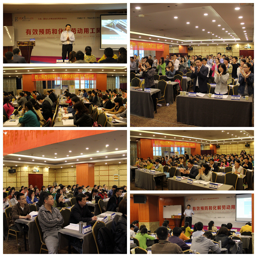 2015年4月18日,新安人才网企业管理咨询中心2015年“领跑十年.智赢未来”系列精品公开课第六讲《有效预防和化解劳动用工风险》在合肥市庐阳区银瑞林国际大酒店四楼瑞泰厅成功举办!来自全省各行各业的多名企业家、单位领导、企业HR高管参加了本次课程。 为了帮助众多企业的HR高管在日常工作中更好地为企业创造价值,更好地讲劳工风险降到最低。新安人才网企业管理咨询中心特别邀请劳动仲裁员、上海市企业家协会特约研究员、上海社会科学院特邀研究员、上海电视台新闻透视特邀专家刘新苗老师来合肥为大家传道授业解惑。 在授课过程中,刘新苗老师从一连串的劳工风险数据分析大揭秘入手,层层剖析劳动法的每一个细节,针对细微性入手,并对其针对性的进行探讨,精确的给与了建议。 刘新苗老师结合法律最新解释、时事热点和职场实例,用一个个生动真实的案例和学员们进行互动,全场笑声不断,大家认真听课、认真记录,结合自家企业的实例,将一个个难题引刃而解。刘新苗老师充满激情的授课方式更是激发了学员极大的学习兴趣,课间休息时分,学员们紧紧围绕在刘新苗老师身边,提出自己的疑问和企业的困惑,刘新苗老师一一为其解答。师生互动热烈,欢声笑语从不间断! 这次有很多外地的客户连夜赶来参加了我们两天的课程,在课间休息时,他们接受了采访,他们一致表示:“新安人才网的公开课丰富多彩,每一场都是那么的有干货!!!每一场都是那么的有趣!!!让我们实实在在的学到了东西,解决了问题。我们和我们的企业从课程中获益匪浅,我们是新安人才网公开课的忠实粉丝。虽然我们从外地赶来,周六晚上还要回去!但课是一定要听的!因为老师的课实在是太博大精深了!每一次听课都有新的收获新的惊喜!” 新安人才网每一场公开课都是经过审慎甄选的,既要符合当下的经济形势,也要对接企业需求,课程内容更是要过硬。新安人才网的课程原则就是让参训学员学有所得,学有所用,决不让企业花一分冤枉钱。 2015年,新安人才网公司应客户需求精心设计、精选师资、结合新思维新趋势推出“领跑十年,智赢未来”系列的公开课已经在轰轰烈烈的进行了!我们一直致力为企业提供最具实效的培训课程。为企业管理者的成长、成功打造快速通道! 下一堂公开课,4月25日《80、90后员工管理》我们再见!