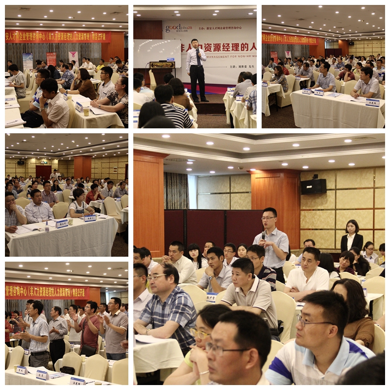 2015年5月23日,新安精品公开课第9讲《以非人力资源经理的人力资源管理》在银瑞林大酒店4楼瑞泰厅盛大开课!本次课程讲师是中国实力派HR管理专家,管理学博士刘世荣老师!本次课程在5月23日上午9:00准时开始,刘世荣老师一上场就用自己特有的幽默和风趣吸引了大家的好奇心,牢牢地征服了大家。 经常有人说团队很难管理很麻烦,如何管理团队?如何让团队发挥出最大的作用?如何做一个出色的领导?如何调动员工的工作积极性?想必难倒了一大群英雄汉。课程中,刘世荣老师用事实为例子,结合现实企业的销售管理案例和时事新闻、引导大家积极发言,将问题一一剖析,并对症下药,用最言简意赅的话语说出了最深刻、最实用的道理。 刘世荣老师举出的案例和课堂实战演练让大家笑声不断,在笑声中结合自家单位销售团队的情况,对课程内容有了更为深刻的理解! 这次有很多外地的客户连夜赶来参加了我们两天的课程,在课间休息时,他们接受了采访,他们一致表示:“新安人才网的公开课丰富多彩,每一场都是那么的有干货!!!每一场都是那么的有趣!!!让我们实实在在的学到了东西,解决了问题。我们和我们的企业从课程中获益匪浅,我们是新安人才网公开课的忠实粉丝。虽然我们从外地赶来,周五晚上还要回去!但课是一定要听的!因为老师的课实在是太博大精深了!每一次听课都有新的收获新的惊喜!” 新安人才网每一场公开课都是经过审慎甄选的,既要符合当下的经济形势,也要对接企业需求,课程内容更是要过硬。新安人才网的课程原则就是让参训学员学有所得,学有所用,决不让企业花一分冤枉钱。 2015年,新安人才网公司应客户需求精心设计、精选师资、结合新思维新趋势推出“领跑十年,智赢未来”系列的公开课已经在轰轰烈烈的进行了!我们一直致力为企业提供最具实效的培训课程。为企业管理者的成长、成功打造快速通道! 下一堂公开课,5月29日《组织执行力提升》我们再见!